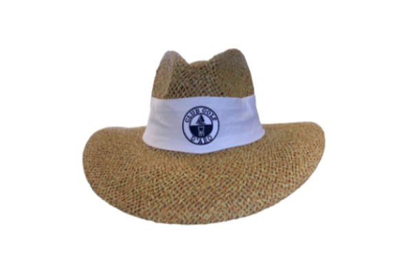 Cómodo sombrero tipo «safari» y cinta blanca con el logo del Club